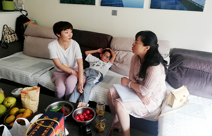 因?yàn)楣ぷ髑闆r特殊,同樣通過(guò)微信視頻接受家訪的,還有直管部工會(huì)主席普俊寓的丈夫邵震波。當(dāng)直管部經(jīng)理蔣仁和接通視頻時(shí),電話那頭傳來(lái)的聲音讓人勉強(qiáng)能聽(tīng)清:“我這邊..信號(hào)..不..太..好..”在斷斷續(xù)續(xù)的畫面中,微信視頻自動(dòng)掛斷,幾分鐘后,蔣仁和接到了邵震波回打過(guò)來(lái)的視頻電話?!安缓靡馑佳?,我在外地出差,這邊信號(hào)不太好。”“沒(méi)事!這次視頻家訪,主要是想了解一下普俊寓上班八小時(shí)以外的活動(dòng)內(nèi)容。”在了解邵震波工作與生活近況后,蔣仁和說(shuō)到?!耙话氵€是在家照顧孩子,因?yàn)槲医?jīng)常出差嘛,孩子還是她照顧的多。周末的話除了開(kāi)會(huì)和出差,她有時(shí)會(huì)帶父母和孩子出去玩?!鄙壅鸩ㄎ⑿Υ鸬馈R曨l結(jié)束后,他還要趕往另一座城市,繼續(xù)他的出差之旅。