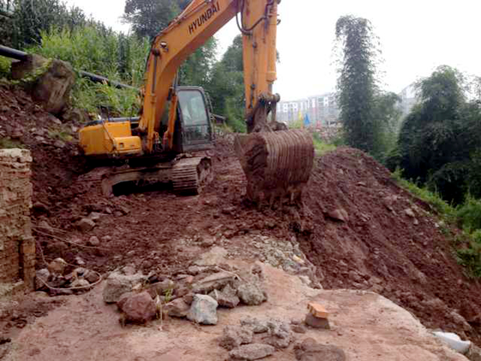 綏江項(xiàng)目部臨時(shí)組建了救援隊(duì)作為“先頭部隊(duì)”趕往受災(zāi)現(xiàn)場,可眼前的一幕讓他們驚呆了,小文橋下方排洪溝阻斷造成鄉(xiāng)鎮(zhèn)道路沖毀三分之一,幾十個(gè)村民正冒著暴雨將家中的物資向城里轉(zhuǎn)移;中城鎮(zhèn)鳳池17隊(duì)上方泄洪溝已斷裂垮塌,十幾個(gè)小伙子正在用鐵鍬冒雨將石塊堵住的泄洪溝挖開?!翱?!你們幾個(gè)去幫老鄉(xiāng)搬運(yùn)轉(zhuǎn)移,你們幾個(gè)跟我到下邊去!”“挖機(jī)呢?快把挖機(jī)師傅都叫來……”盡管暴雨重重地打在臉上和身上,卻沖刷不掉救援隊(duì)員鏗鏘有力的吶喊聲。