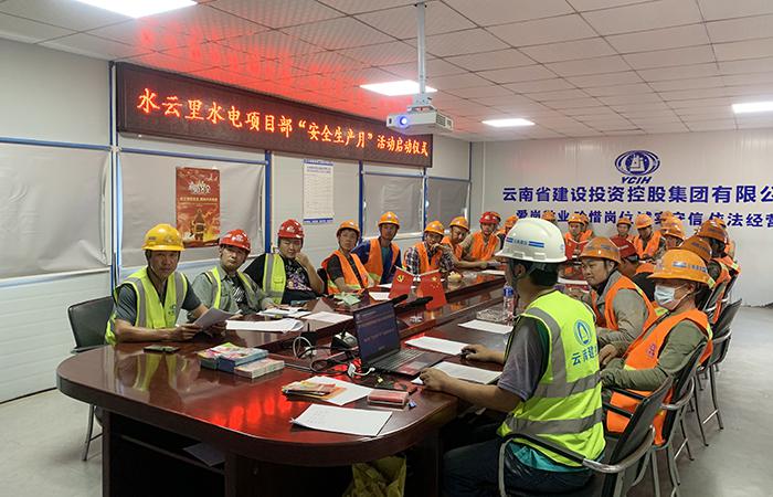 在第20個(gè)全國(guó)“安全生產(chǎn)月”活動(dòng)開展之際,6月19日下午13點(diǎn)晉寧水云城水電項(xiàng)目部舉行了安全月啟動(dòng)儀式,參會(huì)人員由項(xiàng)目部管理人員、勞務(wù)班組長(zhǎng)、勞務(wù)班組人員等共26人。