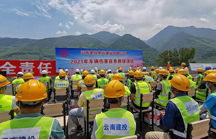 8月4日,公司在路橋三部永金高速項(xiàng)目一分部舉行2021年二季度“車輛傷害”應(yīng)急演練活動(dòng)。玉溪市永金高速公路投資建設(shè)有限公司副總經(jīng)理徐斌、公司副總工程師何家軍、公司安全總監(jiān)伏見偉出席活動(dòng)。