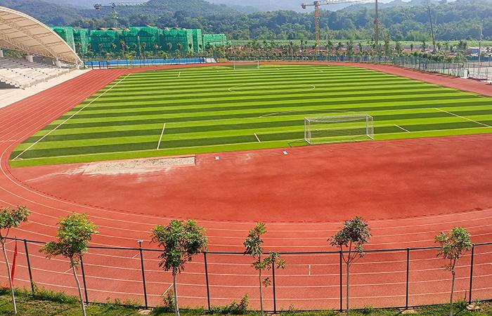 熱帶雨林的螞蟻也很熱情,剛進場時,測量員在茂密的草叢穿梭找點,晚上下班回來時能擦完一整瓶藥膏。后來,在20多臺機械和100多名管理人員及工人的奮戰(zhàn)下,茂密的草叢變成一條條明亮的道路。看,已經(jīng)到了運動健兒們最喜歡的地方,國際運動比賽水平的400米足球場,硅膠籃球場,為這個新建的校區(qū)增添了勃勃生機。