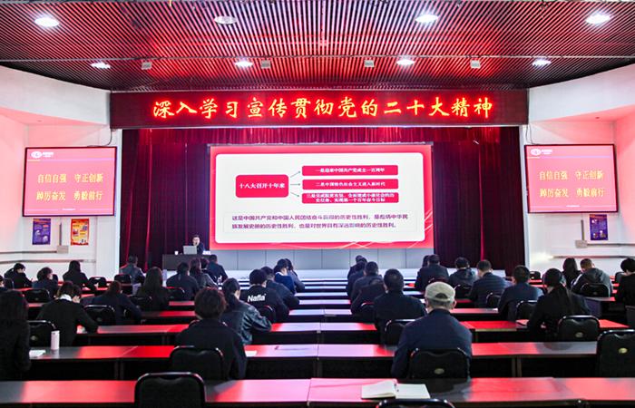 11月26日上午,公司黨委書記、副董事長蔣璽為聯系黨支部、所在黨支部的黨員干部職工宣講黨的二十大精神并講授專題黨課。