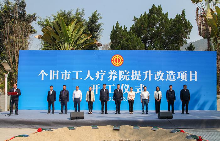 3月18日上午,由集團(tuán)五公司承建的個(gè)舊市工人療養(yǎng)院提升改造項(xiàng)目舉行開工儀式,省總工會(huì)黨組成員、副主席李琦出席儀式并宣布項(xiàng)目開工。紅河州政協(xié)副主席、州總工會(huì)主席張艷梅,集團(tuán)公司黨委副書記、工會(huì)主席陳文雙出席儀式并講話,紅河州總工會(huì)黨組書記、常務(wù)副主席姜云主持儀式。