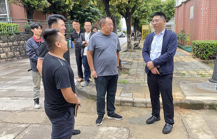 付雋蒼一行全面了解小區(qū)物業(yè)的安全管理、環(huán)境衛(wèi)生和工作人員生活情況,并提出工作要求。