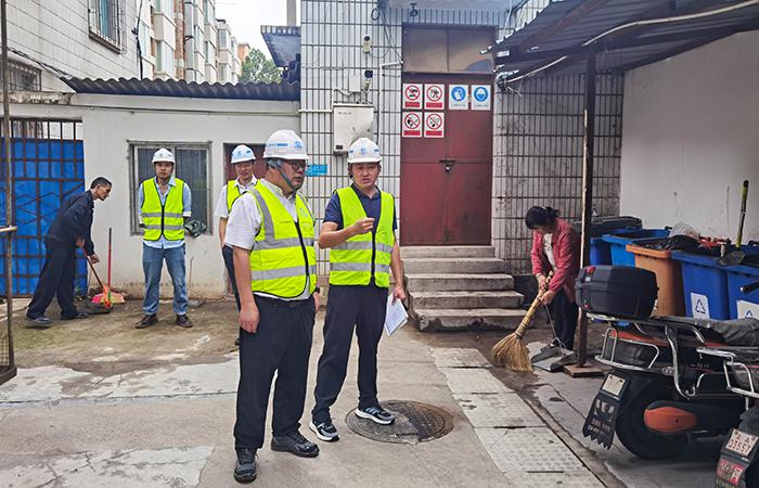 在兩處家屬區(qū),蔣璽詳細了解小區(qū)的住戶情況,物業(yè)人員和防汛設備配置情況,實地檢查了環(huán)境衛(wèi)生、配電房、滅火器等。