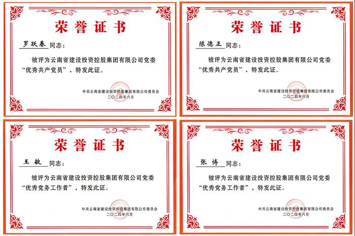 6月30日,云南建投集團(tuán)黨委召開慶祝中國共產(chǎn)黨成立103周年暨“兩優(yōu)一先”表彰大會。公司2名共產(chǎn)黨員獲評“優(yōu)秀共產(chǎn)黨員”榮譽(yù)稱號,2名黨務(wù)工作者獲評“優(yōu)秀黨務(wù)工作者”榮譽(yù)稱號。