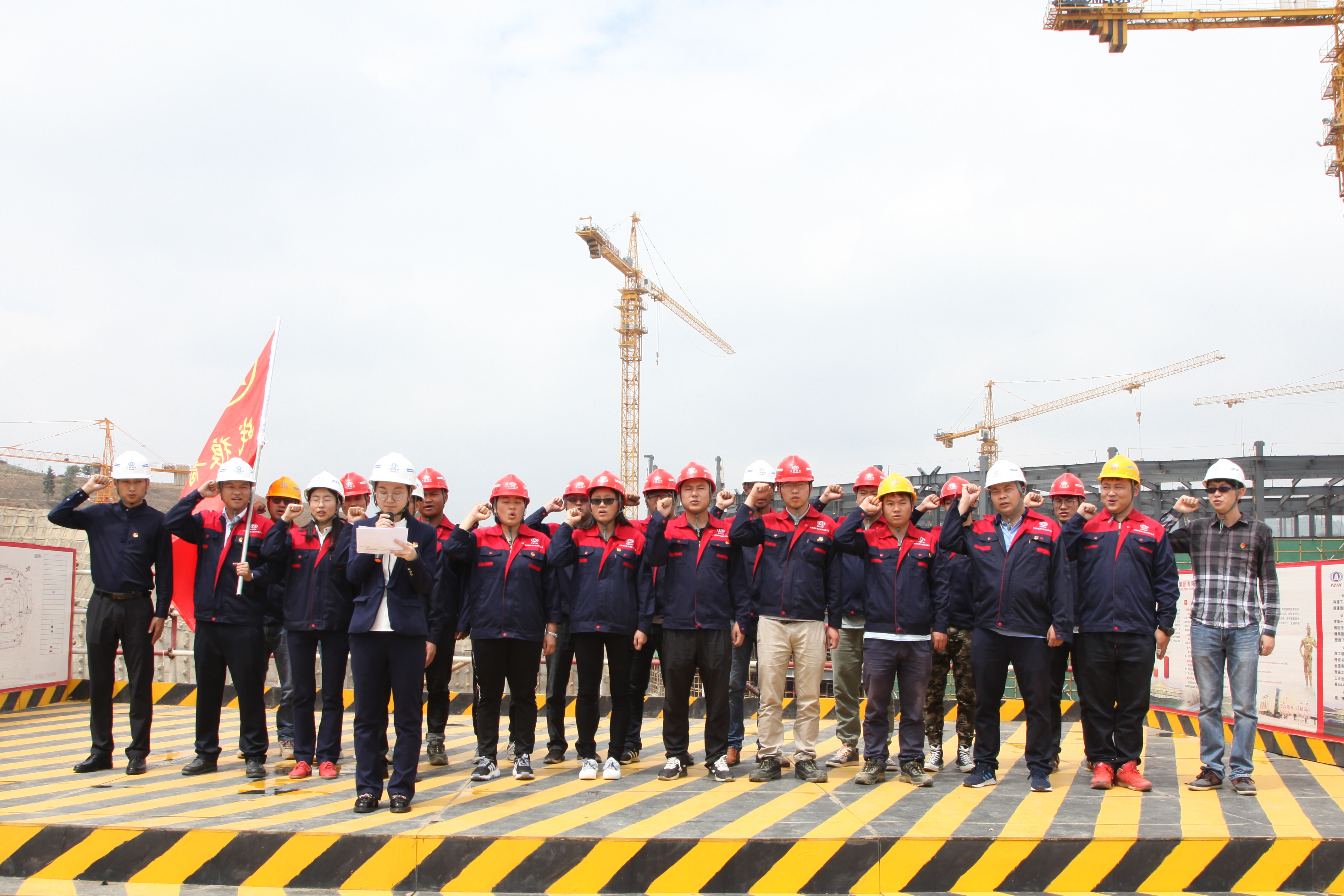 5月27日下午,第三直管項(xiàng)目部在車行天下汽車城(二期)項(xiàng)目施工現(xiàn)場舉行“戰(zhàn)狼青年突擊隊(duì)”的授旗儀式。公司黨委副書記榮凱和團(tuán)委副書記施尤俊親臨現(xiàn)場為“戰(zhàn)狼青年突擊隊(duì)”授旗并作動(dòng)員講話。“最艱苦的擔(dān)子我們挑、最危險(xiǎn)的地方我們?nèi)ァ⒆罹o急的關(guān)頭我們上,最困難的時(shí)刻我們到?!卑殡S著洪亮的宣誓聲,突擊隊(duì)正式成立。