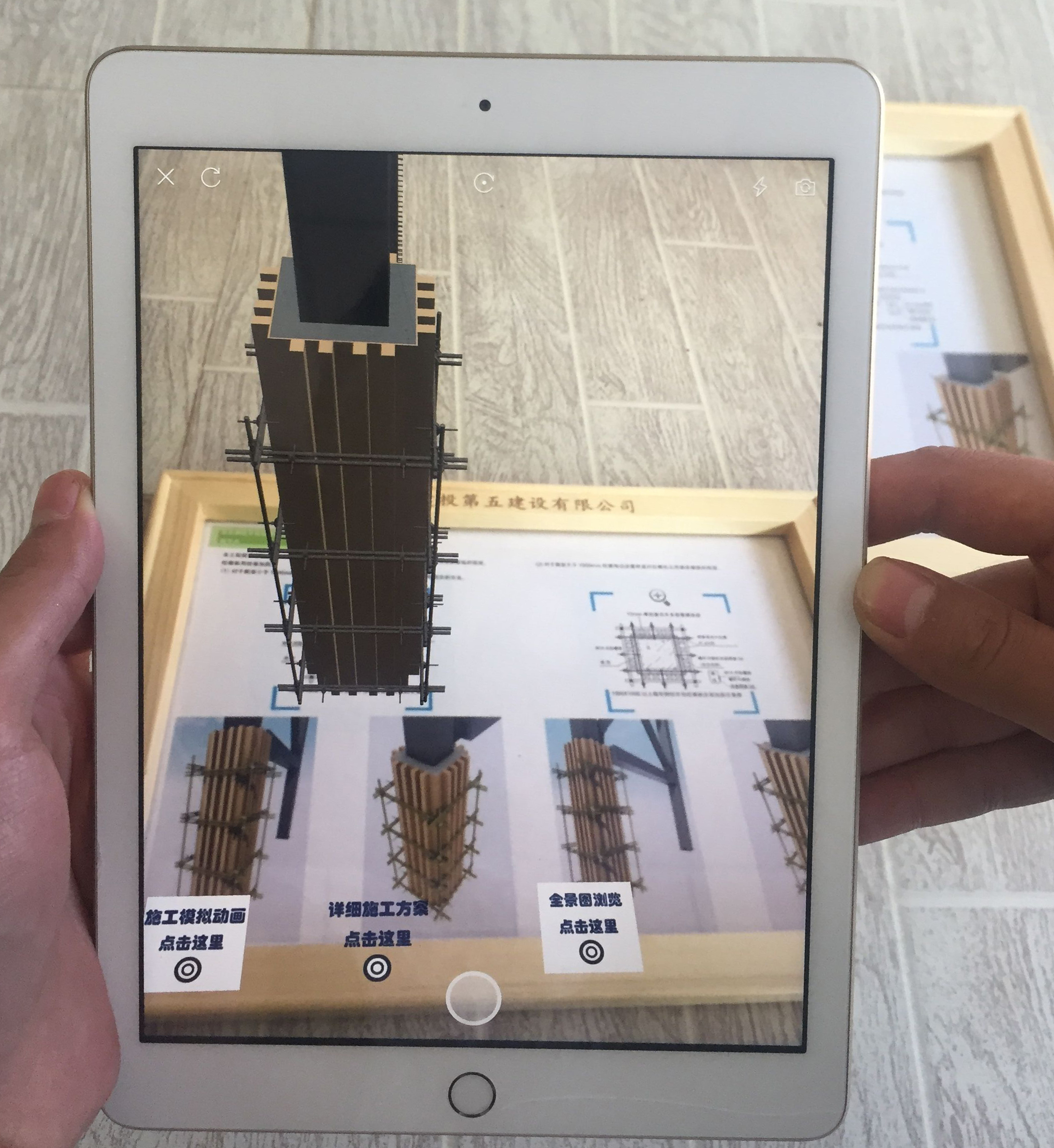 來到車行天下汽車城(二期)項(xiàng)目的AR技術(shù)展示區(qū),可以看到一個(gè)個(gè)畫框擺在旋轉(zhuǎn)臺(tái)上,當(dāng)記者用平板電腦的軟件對(duì)準(zhǔn)其中一張圖片,一組立體的鋼構(gòu)件就從平板電腦的屏幕上跳躍出來。隨著旋轉(zhuǎn)臺(tái)的轉(zhuǎn)動(dòng)可以從不同角度查看鋼結(jié)構(gòu)構(gòu)件的各個(gè)細(xì)節(jié),讓人興趣盎然。