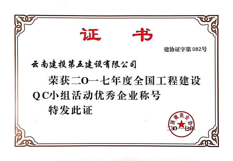 公司榮獲2017年度全國工程建設(shè)QC小組活動(dòng)優(yōu)秀企業(yè)稱號