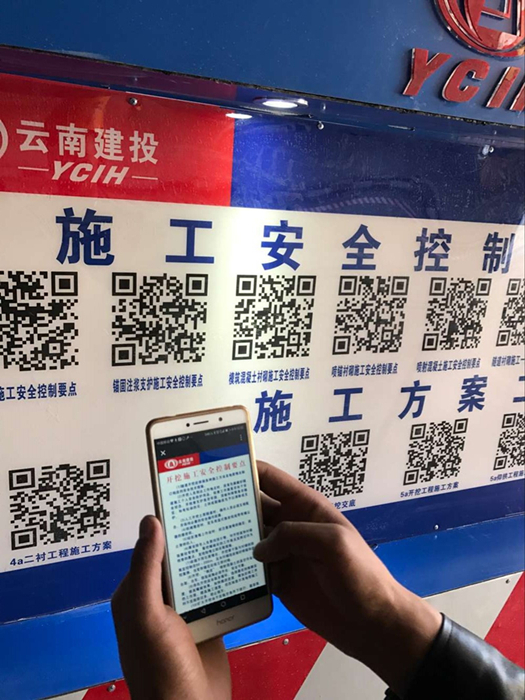 二維碼掃描平臺(tái)位于古那灣2號(hào)隧道進(jìn)口端洞外的休息區(qū)及洞口人車(chē)分流區(qū)的人行道上,涵蓋施工安全控制要點(diǎn)、施工方案、作業(yè)指導(dǎo)書(shū)、安全技術(shù)交底、安全操作規(guī)程等施工工藝、規(guī)范和安全、技術(shù)、質(zhì)量管理內(nèi)容。進(jìn)入施工現(xiàn)場(chǎng)前如需查詢(xún)相關(guān)資料,可直接通過(guò)手機(jī)掃描二維碼進(jìn)行查詢(xún),操作非常方便。就算施工員不小心忘記了施工技術(shù)交底中的某個(gè)數(shù)據(jù),只要輕松掃一掃就能全部“收入囊中”,巧當(dāng)施工現(xiàn)場(chǎng)的“教科書(shū)”。