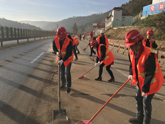 技術(shù)支持: 方森科技 2017年1月21日上午,路橋四部象山試驗(yàn)段項(xiàng)目部組織全體工作人員共計(jì)40余人開展“迎新春”義務(wù)清掃公路活動(dòng)。全體工作人員積極參加,義務(wù)清掃了彌玉高速象山試驗(yàn)段1號隧道口304國道的沿途三公里區(qū)域。