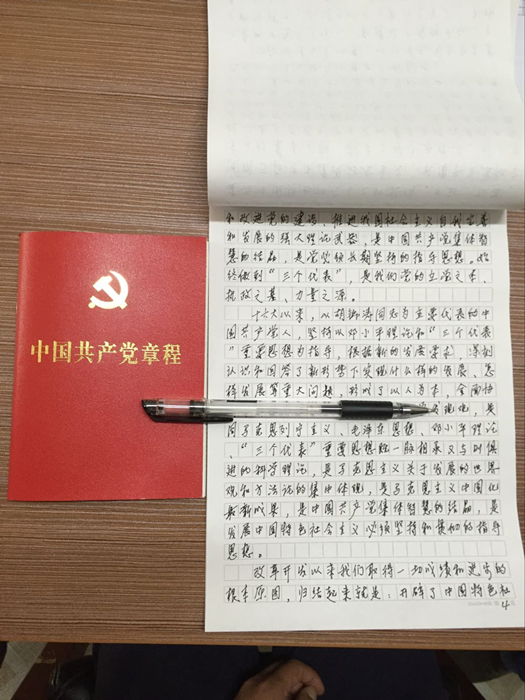 項(xiàng)目部黨員抄寫(xiě)《黨章》