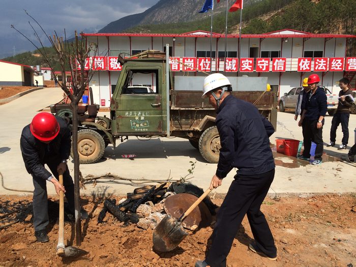 “你挖坑來、我放樹;你埋土來、我澆水”,3月13日,公司香麗項目部三工區(qū)駐地的植樹活動正在熱火朝天地進行著。