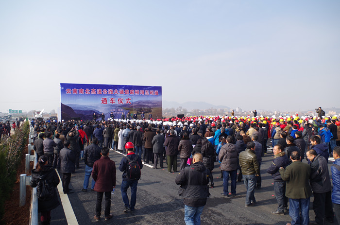 2015年12月26日上午,在冬日和煦的陽光下,我省南北高速公路大通道麻柳灣至昭通通車儀式在集團承建的D標段昭通南立交舉行。值得一提的是,儀式舞臺搭建的位置正是公司負責的D3標段項目部所施工的K89+540橋。隨著副省長丁紹祥在通車儀式上宣布麻昭高速全線正式通車,意味著全長1032公里的云南南北大通道實現(xiàn)全線貫通,為我省綜合交通3年攻堅和“十二五”圓滿收官增添了濃墨重彩的一筆。