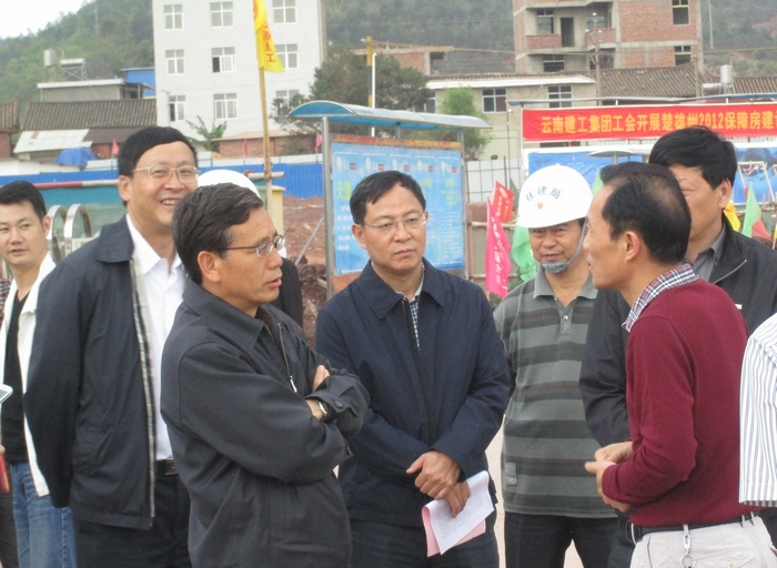 5月3日,云南省副省長(zhǎng)丁紹祥、楚雄州州委、楚雄市市委等相關(guān)領(lǐng)導(dǎo)到公司楚雄市2012年公共租賃住房-陽(yáng)光花園小區(qū)工地視察。