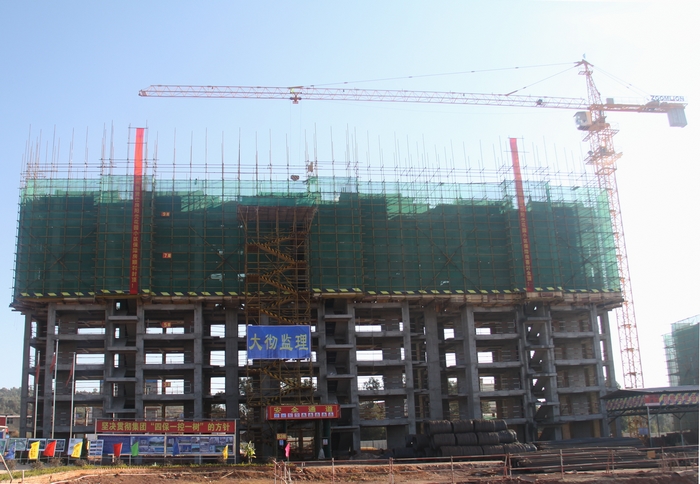 封頂?shù)腂1、B3棟主體為11層、全框剪結(jié)構(gòu),設(shè)計(jì)戶型為兩梯四戶三單元,建筑面積13000多平方米,9月開始基礎(chǔ)施工,歷時(shí)4個(gè)月順利封頂。