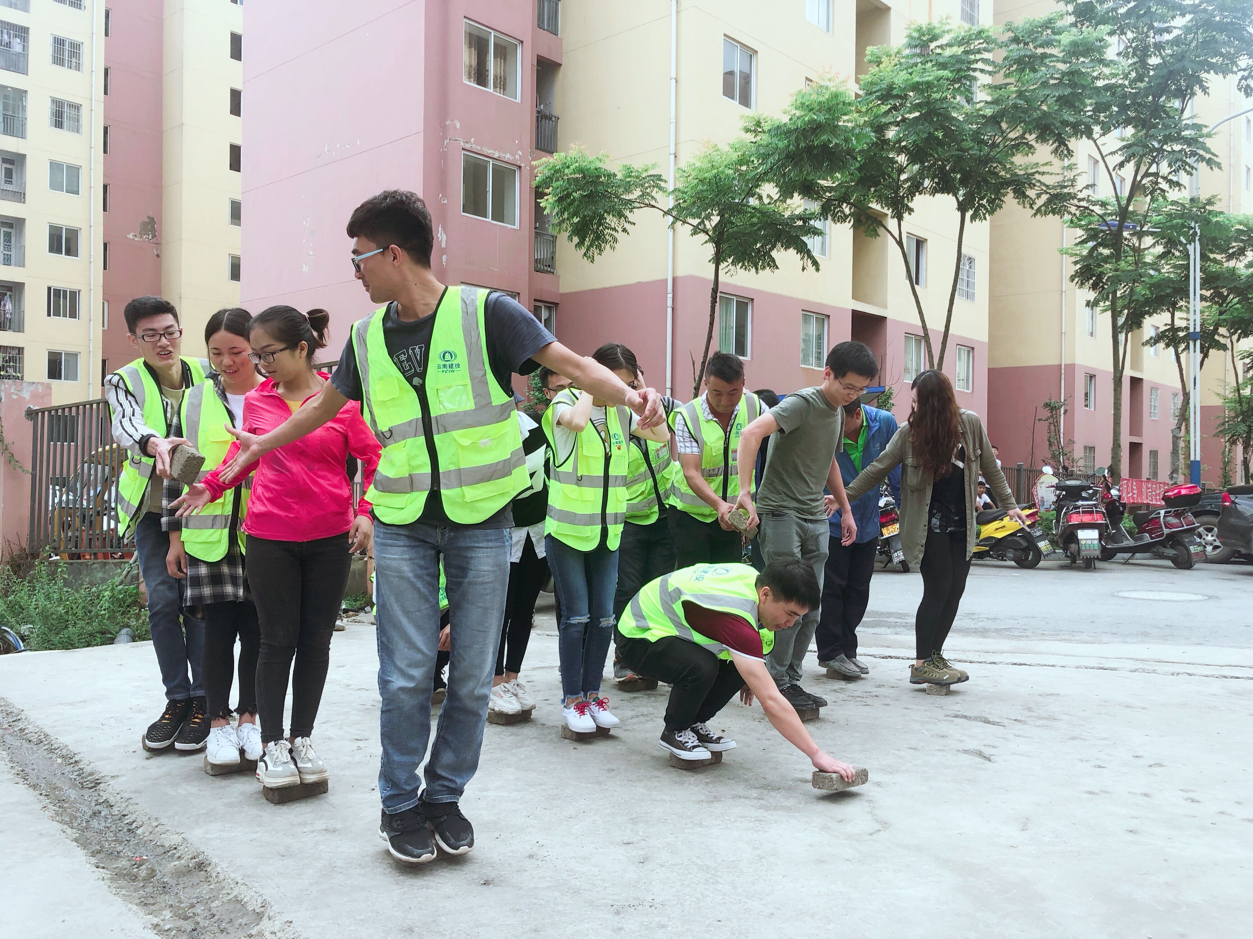 會后,戶外團(tuán)建活動正式開始,文體委員陳彥羽認(rèn)真講解游戲規(guī)則,并將大家分為四組進(jìn)行游戲比拼。接力游戲考驗(yàn)團(tuán)隊(duì)協(xié)作能力,大家互相鼓勵(lì)吶喊,積極配合;吹乒乓球環(huán)節(jié)增加難度,要求必須使用“爆破音”,大家使出渾身解數(shù),顧不上面粉糊臉,努力吹出更多數(shù)量的乒乓球。在搬磚接力游戲中,大家利用從項(xiàng)目上借來的搬磚,前后接力傳送磚頭,盡力將磚頭扔得更遠(yuǎn)一些,都為爭取最后的勝利而努力。