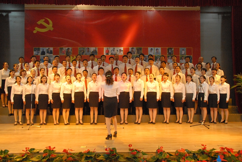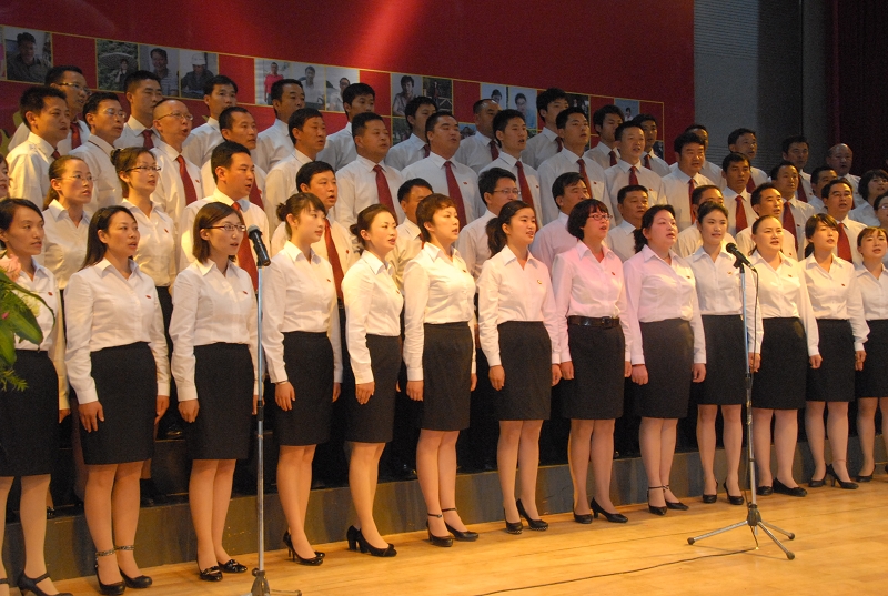 從6月中旬開始,機關黨支部便組織了70名黨員組成合唱隊,每天利用兩個小時認真練習,從人員、指揮、伴奏到服裝都進行了精心籌備。功夫不負有心人,大家的努力終于在7月1日這天收到了成效,紅歌合唱廣受好評,機關黨支部成功為建黨90周年獻禮!