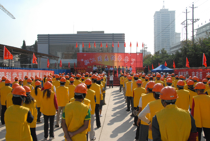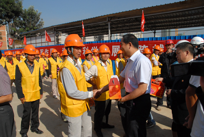 技術(shù)支持: 方森科技 2010年9月19日上午,在中秋節(jié)、國慶節(jié)來臨之際,昆明市總工會主席戚永宏率市總工會領(lǐng)導(dǎo)班子一行來到公司直五部施工的昆明市新工人文化宮建設(shè)工地慰問正在施工的公司職工和農(nóng)民工,為他們每人帶去了一盒月餅。戚永宏說:“大家辛苦了,祝大家節(jié)日快樂?!?BR> 五公司副總經(jīng)理李興奎代表施工單位對他們的到來和關(guān)心表示歡迎和感謝。他說:“多年來,公司創(chuàng)造了5項(xiàng)魯班獎(jiǎng),承建了省內(nèi)多項(xiàng)重點(diǎn)工程、市內(nèi)多項(xiàng)地標(biāo)性建筑。去年,公司簽訂工程合同額30億元,完成施工產(chǎn)值18億元,是各位領(lǐng)導(dǎo)關(guān)心、支持的結(jié)果。按建工集團(tuán)要求,今年公司承接任務(wù)要達(dá)到35億元,完成施工產(chǎn)值25億元,公司將不斷強(qiáng)化質(zhì)量、安全、文明施工管理,參與昆明市“四創(chuàng)兩爭”活動,支持新昆明的建設(shè),為昆明市的經(jīng)濟(jì)發(fā)展作出應(yīng)有的貢獻(xiàn)?!睂τ诶ッ魇行鹿と宋幕瘜m項(xiàng)目,他強(qiáng)調(diào)“公司將與設(shè)計(jì)、監(jiān)理各單位密切配合,盡快掀起施工熱潮,嚴(yán)格管理,精心施工,重合同,講誠信,按期完成施工任務(wù)?!?BR> 戚永宏一行還到施工現(xiàn)場了解項(xiàng)目的具體施工情況,與項(xiàng)目建設(shè)者們親切交談。