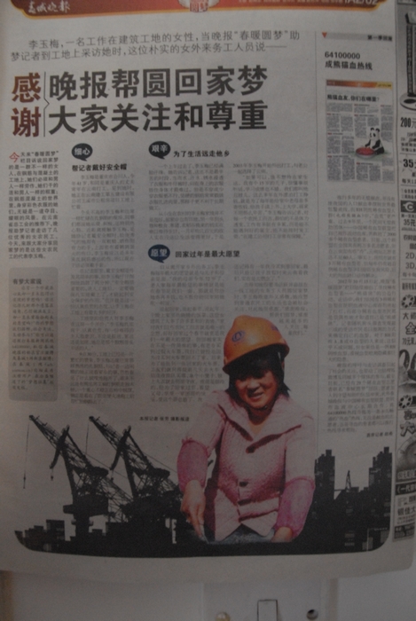 2013年1月28日春城晚報A2版02頁整頁報道了公司優(yōu)秀女農(nóng)民工李玉梅的回家夢。