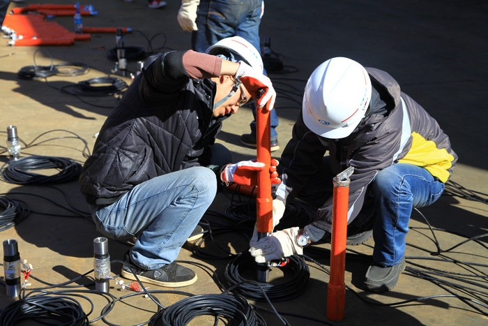 “15MPA、18MPA、21MPA……”2013年1月17日,云南大力神鋼結(jié)構(gòu)廠區(qū)內(nèi)傳來了一個(gè)儀器讀數(shù)的聲音,一群五建人雙眼緊盯著一個(gè)輪扣架體,神情緊張卻又充滿期盼, 600KN壓力試驗(yàn)機(jī)儀表指針不停地的轉(zhuǎn)動(dòng)著,“砰”的一聲,儀表指針飄過24MPA旋即回到零位,場地上的人好似卸掉重負(fù)一般歡欣起來:“輪扣壓力試驗(yàn)成功了!”