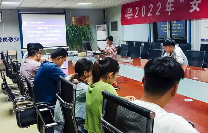 8月5日晚,路橋三部組織全體共青團(tuán)員及青年職工,在永金高速一分部項(xiàng)目部會(huì)議室學(xué)習(xí)共青團(tuán)中央[2022]14號(hào)文及共青團(tuán)云南省委關(guān)于學(xué)習(xí)宣傳貫徹習(xí)近平總書(shū)記《論黨的青年工作》的通知。會(huì)議深刻領(lǐng)悟團(tuán)中央“深刻認(rèn)識(shí)《論黨的青年工作》的重大意義,深刻領(lǐng)會(huì)《論黨的青年工作》的豐富內(nèi)涵,學(xué)懂弄通做實(shí)《論黨的青年工作》的核心要義”及團(tuán)省委“深入學(xué)習(xí)領(lǐng)悟,廣泛宣傳教育,抓好貫徹落實(shí)”的文件精神。同時(shí),摘選習(xí)近平總…