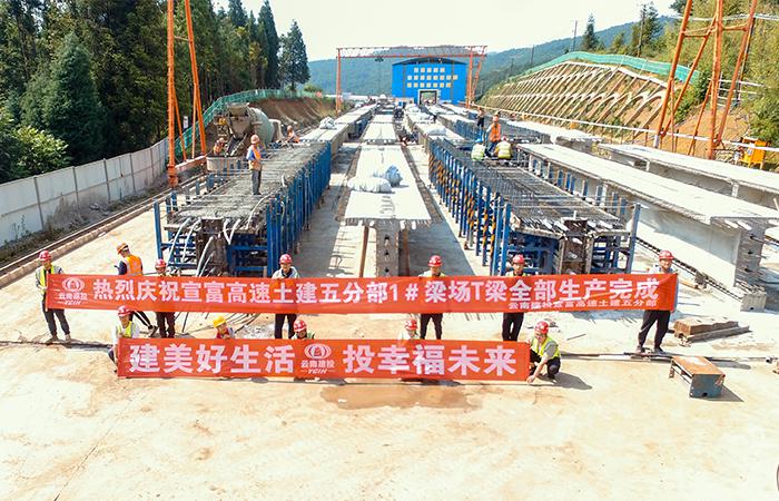 宣富高速公路項目五分部1#梁場預(yù)制T梁全部生產(chǎn)完成
