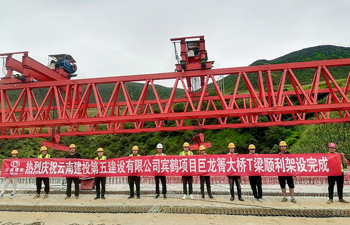 賓鶴高速八工區(qū)巨龍箐大橋雙幅梁板架設(shè)完成