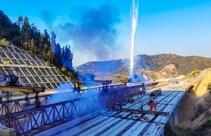 2月17日,隨著玉屏村1號大橋最后一片T梁吊裝成功,彌玉高速象山項(xiàng)目圓滿完成標(biāo)段內(nèi)T梁架設(shè)工作。彌玉高速象山試驗(yàn)段主線內(nèi)共設(shè)置6座大橋,橋梁梁板設(shè)計(jì)為18.5米~40米不等的T梁,共計(jì)266片。甸基壩1、2號大橋及玉屏村3號大橋完成T梁架設(shè)工作后,剩余玉屏村1、2號大橋98片T梁因中石油管道改遷問題,運(yùn)梁通道一直未能成型,導(dǎo)致T梁吊裝工作延后一年多才得以組織開展。施工條件達(dá)到后,項(xiàng)目領(lǐng)導(dǎo)加緊落實(shí)架…