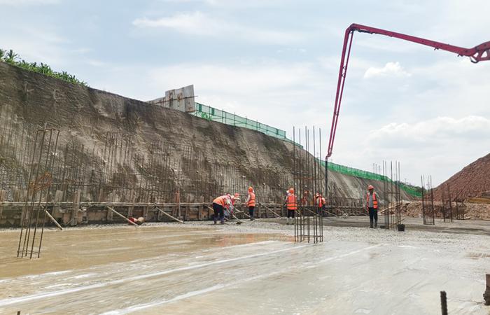 6月20日晚,隨著泵車臂一節(jié)節(jié)地收起,由第十直管項目部負責施工的廣南縣教育文化服務(wù)中心建設(shè)項目設(shè)計、施工總承包(EPC)工程基礎(chǔ)筏板(1-8/A-D軸)順利澆筑完成。在質(zhì)檢站、建設(shè)單位、監(jiān)理單位、項目管理單位等多方見證下,項目部順利通過鋼筋驗收,隨后緊鑼密鼓地組織人員開展混凝土澆筑工作。由于近期降雨量較大,項目現(xiàn)場積水嚴重,項目施工過程面臨諸多困難與挑戰(zhàn)。前期準備階段,項目部精心策劃,對施工方案進…