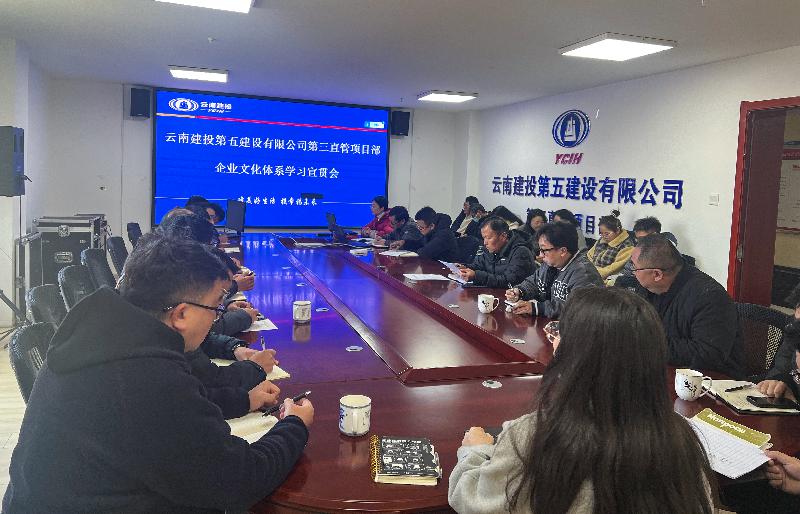 2月8日,第三直管項目部組織直管部在昆全體人員召開專題會,集中學習宣貫公司新企業(yè)文化精神。會議傳達了公司全新企業(yè)文化體系,闡釋解讀公司未來戰(zhàn)略發(fā)展思路和對今后重點工作做系統(tǒng)部署。會議要求,直管部全體職工要積極主動學習公司戰(zhàn)略精神,與公司最新發(fā)展戰(zhàn)略同頻共振,深入學習公司全新企業(yè)文化體系,做到內(nèi)化于心、外化于行。提高思想認識,進一步強化規(guī)矩及紀律意識,以身作則抓實抓牢作風建設,結(jié)合直管部管理工作實際…