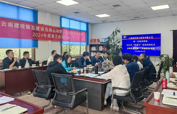 9月12日上午,第一安裝直管項(xiàng)目部舉行“質(zhì)量月”活動(dòng)啟動(dòng)儀式,直管部在昆領(lǐng)導(dǎo)班子、項(xiàng)目經(jīng)理及二線負(fù)責(zé)人共20人參會(huì)。會(huì)議對(duì)公司、直管部“質(zhì)量月”活動(dòng)方案進(jìn)行宣貫,對(duì)安一部項(xiàng)目質(zhì)量管控及安全管控作了安排部署。會(huì)議要求,全體人員一是要提高政治站位。深入學(xué)習(xí)貫徹落實(shí)習(xí)近平總書記關(guān)于質(zhì)量發(fā)展的重要論述。質(zhì)量是企業(yè)的生命,牢固樹立“質(zhì)量第一”的思想。二是要充分發(fā)揮“質(zhì)量月”活動(dòng)的平臺(tái)作用,持續(xù)推廣“四新技術(shù)…