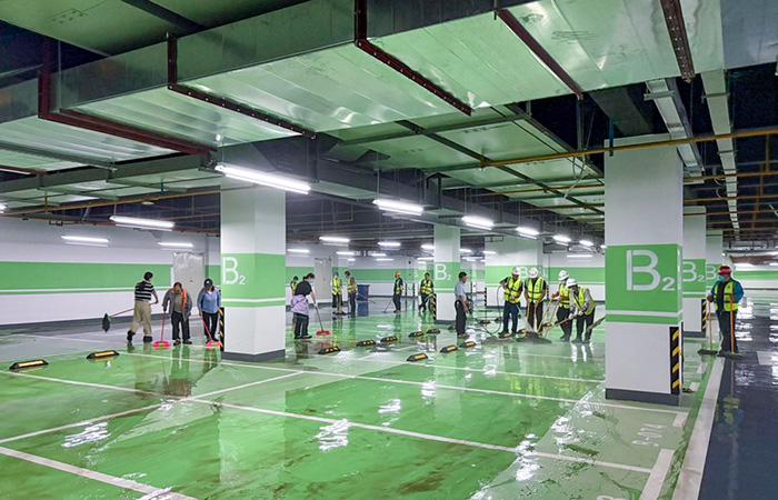 直六部開展建發(fā)曦城商業(yè)廣場項目地下二層停車場移交前大掃除活動