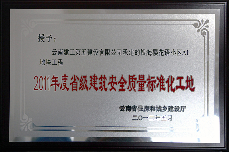 第一直管部承建施工的銀海櫻花語(yǔ)小區(qū)A1地塊工程獲“2011年度省級(jí)建筑安全質(zhì)量標(biāo)準(zhǔn)化工地”稱號(hào)