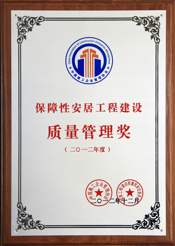 2012年12月,公司榮獲2012年度中國(guó)施工企業(yè)管理協(xié)會(huì)保障性安居工程建設(shè)質(zhì)量管理獎(jiǎng)。